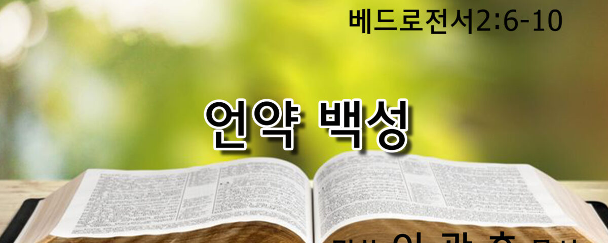 베드로전서 2″6-10 (벧전2:6) 성경에 기록되었으되 보라 내가 택한 보배로운 모퉁잇돌을 시온에 두노니 그를 믿는 자는 부끄러움을 당하지 아니하리라 하였으니 (벧전2:7) 그러므로 믿는 너희에게는 보배이나 믿지 아니하는 자에게는 건축자들이 버린 그 돌이 모퉁이의 머릿돌이 되고 (벧전2:8) 또한 부딪치는 돌과 걸려 넘어지게 하는 바위가 되었다 하였느니라 그들이 말씀을 순종하지 아니하므로 넘어지나니 이는 그들을 이렇게 정하신 것이라 (벧전2:9) 그러나 너희는 택하신 족속이요 왕 같은 제사장들이요 거룩한 나라요 그의 소유가 된 백성이니 이는 너희를 어두운 데서 불러 내어 그의 기이한 빛에 들어가게 하신 이의 아름다운 덕을 선포하게 하려 하심이라 (벧전2:10) 너희가 전에는 백성이 아니더니 이제는 하나님의 백성이요 전에는 긍휼을 얻지 못하였더니 이제는 긍휼을 얻은 자니라