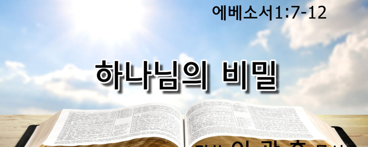 에베소서 1:7-12 (엡 1:7) 우리는 그리스도 안에서 그의 은혜의 풍성함을 따라 그의 피로 말미암아 속량 곧 죄 사함을 받았느니라 (엡 1:8) 이는 그가 모든 지혜와 총명을 우리에게 넘치게 하사V