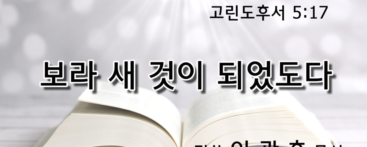 그런즉 누구든지 그리스도 안에 있으면 새로운 피조물이라 이전 것은 지나갔으니 보라 새 것이 되었도다