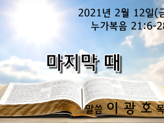 누가복음 21:6-28 (눅 21:6) 너희 보는 이것들이 날이 이르면 돌 하나도 돌 위에 남지 않고 다 무너뜨려지리라 (눅 21:7) 그들이 물어 이르되 선생님이여 그러면 어느 때에 이런 일이 있겠사오며 이런 일이 일어나려 할 때에 무슨 징조가 있사오리이까 (눅 21:8) 이르시되 미혹을 받지 않도록 주의하라 많은 사람이 내 이름으로 와서 이르되 […]