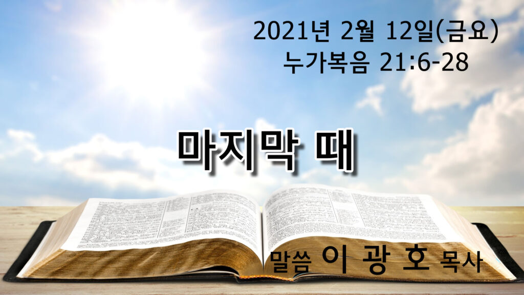 누가복음 21:6-28 (눅 21:6) 너희 보는 이것들이 날이 이르면 돌 하나도 돌 위에 남지 않고 다 무너뜨려지리라 (눅 21:7) 그들이 물어 이르되 선생님이여 그러면 어느 때에 이런 일이 있겠사오며 이런 일이 일어나려 할 때에 무슨 징조가 있사오리이까 (눅 21:8) 이르시되 미혹을 받지 않도록 주의하라 많은 사람이 내 이름으로 와서 이르되 […]